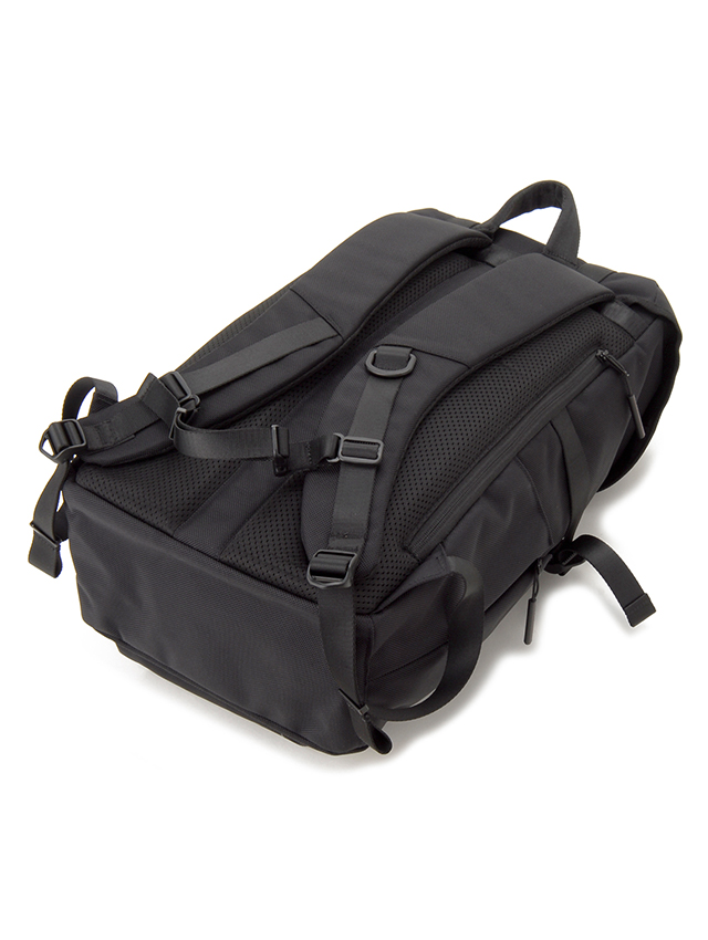 - ショルダーハーネスは表面にCORDURA® Ballistic、裏面にメッシュ素材を採用。極力肩の負担やズレ落ちが少なくなるよう機能美を追求した曲線デザインを採用。またアクティブシーンでは必需の左右留めのチェストストラップを装備。