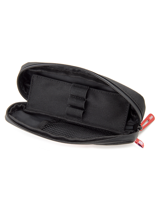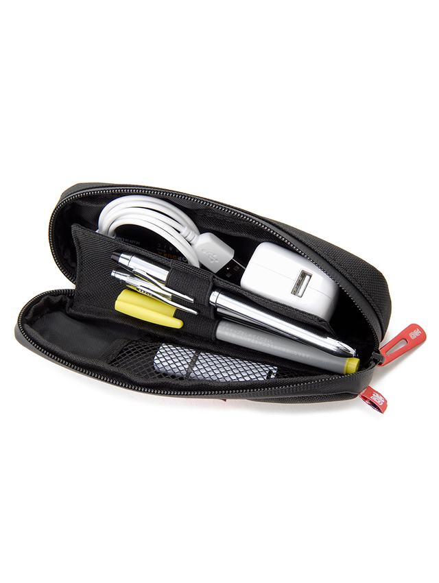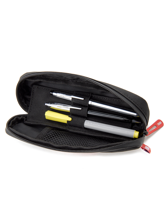 丸みのフォルムが可愛いペンケースです。コンパクトながら使いたい筆記用具や細かなガジェット類が、直ぐに取り出しやすいよう内側には台座の付いたペン挿しやメッシュポケットがあり、整理収納しやすくなっております。